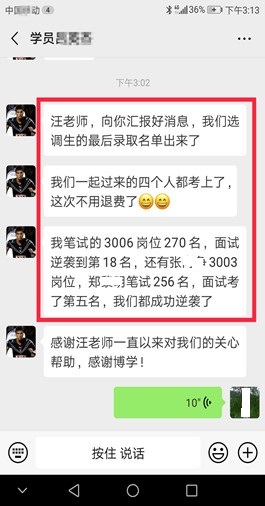 面試上岸有保障(指最終報(bào)考單位錄?。?。 歷年來,事業(yè)單位面試培訓(xùn)班上岸率有保障,均有據(jù)可查。博學(xué)面試課程體系無論是課程的深度、廣度、實(shí)戰(zhàn)性還是歷屆學(xué)員口碑和美譽(yù)度都遠(yuǎn)高于其他同類輔導(dǎo)機(jī)構(gòu)。面試狀元、最后一名反超成功的比比皆是。 |