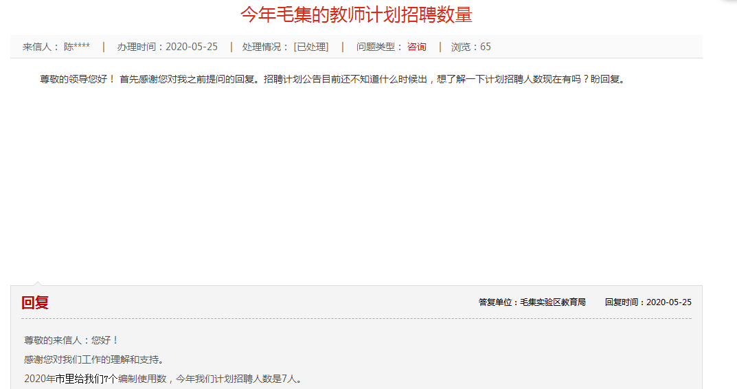 尊敬的來(lái)信人:您好!感謝您對(duì)我們工作的理解和支持。2020年市里給我們7個(gè)編制使用數(shù),今年我們計(jì)劃招聘人數(shù)是7人。