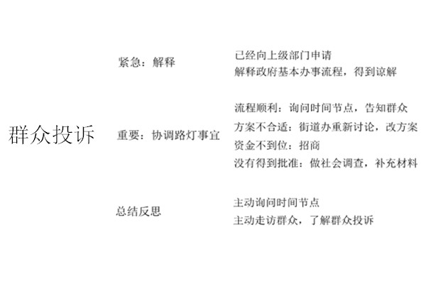本題側(cè)重考察考生解決問題的能力??忌趯忣}的過程中要對(duì)事件的輕重緩急和已經(jīng)給出的限定條件進(jìn)行明確。在解決問題過程要做到對(duì)策可行性強(qiáng),并進(jìn)行逐一解決。