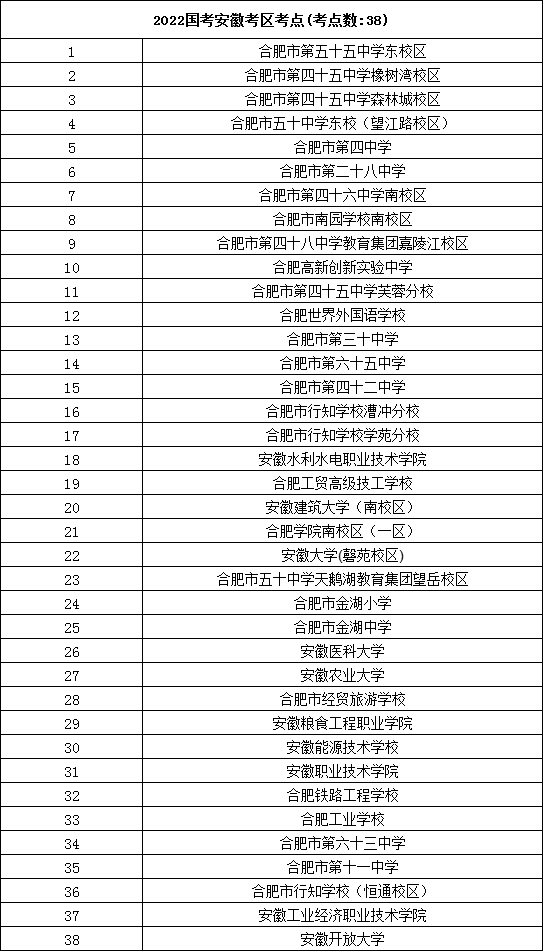 2022年國考安徽考區(qū)具體考點(diǎn)