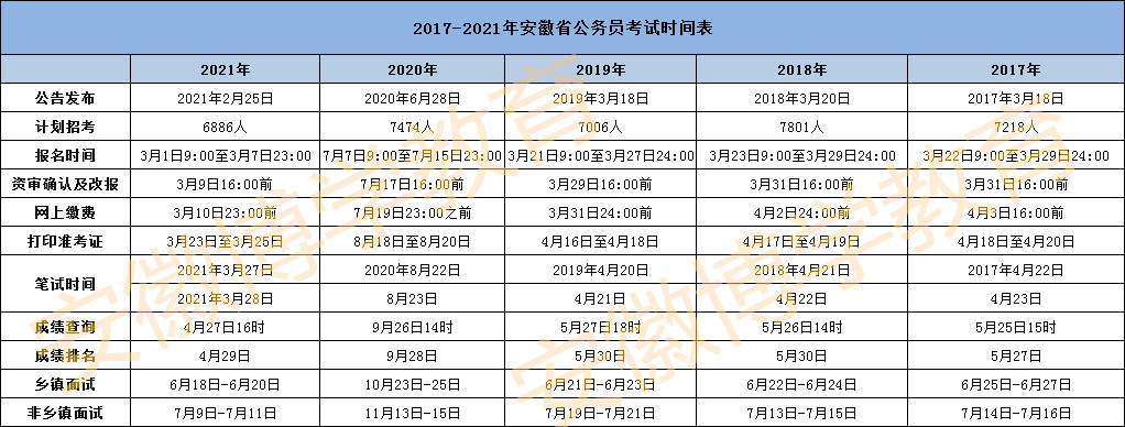 2017-2021年安徽省公務(wù)員考試時間表