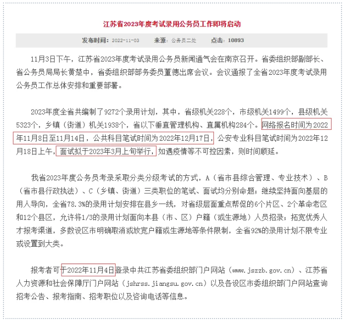 2023江蘇公務(wù)員考試消息已出,快來查收重要信息:招錄人數(shù):9272人,其中,省級(jí)機(jī)關(guān)228個(gè),市級(jí)機(jī)關(guān)1499個(gè),縣級(jí)機(jī)關(guān)5323個(gè),鄉(xiāng)鎮(zhèn)(街道)機(jī)關(guān)1938個(gè),省以下垂直管理機(jī)構(gòu)、直屬機(jī)構(gòu)284個(gè)。