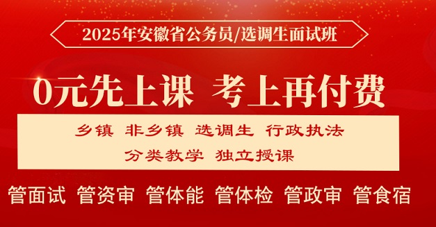我們根據(jù)歷年面試考情定制了2025年安徽省公務(wù)員面試班,業(yè)內(nèi)實力專家團隊將與您并肩戰(zhàn)斗!我們將提供科學(xué)的課程安排與出色的心理訓(xùn)練和技術(shù)指導(dǎo),戰(zhàn)勝一切對手!助您成公!