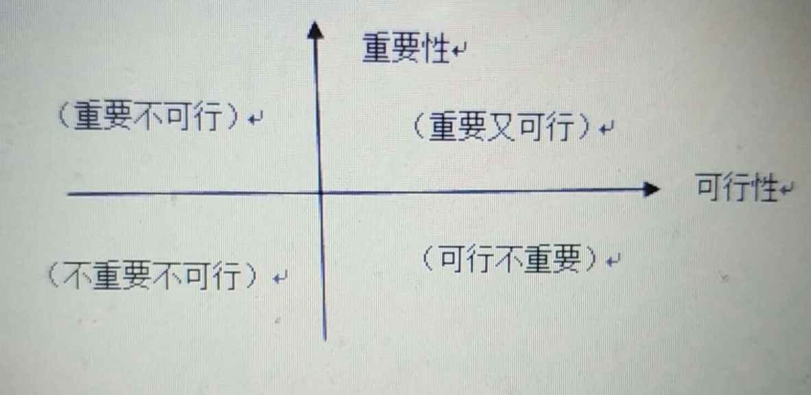 將題目中的五個(gè)選項(xiàng)和自己討論出來的幾個(gè)選項(xiàng)進(jìn)行同類項(xiàng)合并之后,按照重要性可行性的標(biāo)準(zhǔn)填入這個(gè)象限,每個(gè)象限不能超過三個(gè)意見。