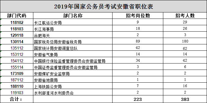2019國(guó)家公務(wù)員考試職位表(安徽招383人,共223個(gè)崗位) |