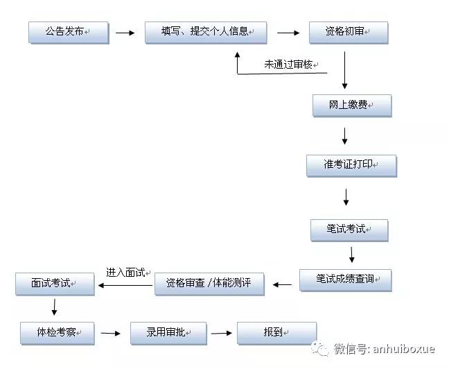 下面給還不了解安徽省考的考生簡單介紹一下,安徽省考按照以下流程進行:公告發(fā)布——職位查詢——網(wǎng)上報名——報名確認——準考證打印——筆試——面試——體檢考察——錄用。